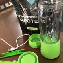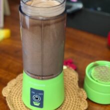 Our 13-Ounce USB-Rechargeable Fruit Blender is powered by a built-in, rechargeable 2000mAh 3.7V. Each blender comes with a USB cord for your convenience: you can charge your blender up from your laptop, a portable power bank, car port charger, or outlet charger. It’s just the ultimate convenience for you to enjoy your favorite drink wherever you are.