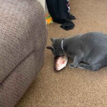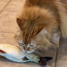 Since opening this toy, my cat has refused to put it down. He has spent literal hours just carrying it everywhere with him and watching it until the battery finally died and he lost interest. Luckily, the fish has a rechargeable battery so I just plugged the fish in overnight and it was as good as new in the morning. He likes to carry the fish everywhere with him, it even came bird watching on the windowsill with him. The motor to the fish isn’t loud but it isn’t silent either, the fish has an on/off switch so I make sure to turn it off at night time while it’s recharging so that I’m not woken up by a stuffed fish flapping on my face. Definitely a fun toy for cats and it comes highly recommended by my cat.