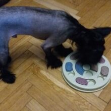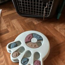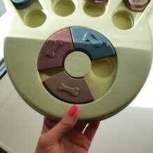 I wasn’t sure if my dog would have anything to do with this. I put treats in it and set it by my dog’s bed. I adopted him after he was rescued from a hoarding situation so he really hasn’t had toys to play with. I’ve had to teach him how to play with them. I noticed the freebie treats were gone one day and checked the rest of the puzzle. All gone! I was amazed. Filled it back up and left it for a few days. Empty again. Now I’ve watched him do it and it’s so funny. I’m going to try to get a video of it. He’s a 15lb chiweenie. Half chihuahua half dachshund and much smarter than I gave him credit. lol