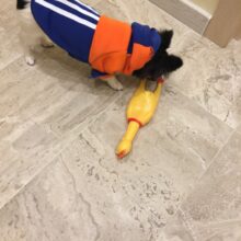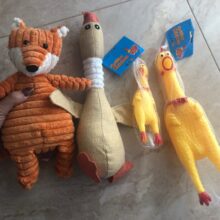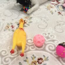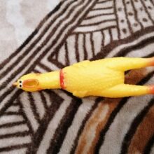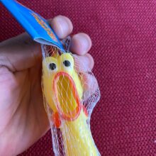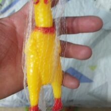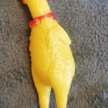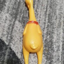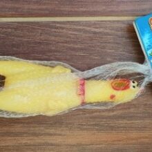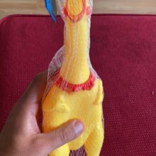 Made of 100% non-toxic rubber, our chicken measures 11 in (28cm) in length, our loud, fussy toy can go with you from parties to concerts and so much more for a screamin’-good time.