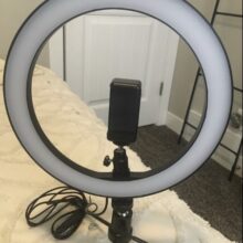 This is a nice little ring light for doing makeup or recording videos sitting down or at a table top! Also travel friendly. It’s a great size. Highly recommended!