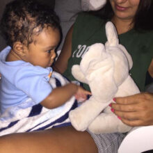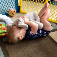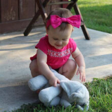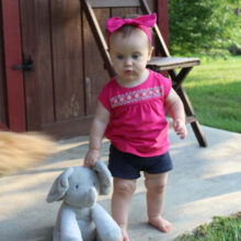 I found this elephant on lightening deal and it had great reviews. I decided to get it for my newborn and she loves it. I use it for when I change her diaper. it sings a song and also plays hide and seek. It’s ears come down over its eyes and then back to normal. It is very cute and babies love it! It is a decent size as well.